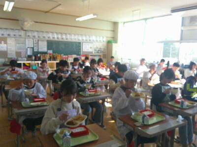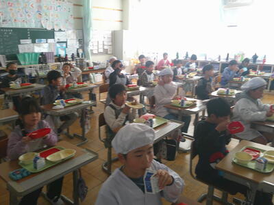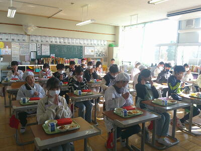 3年生から6年生は、教室での前向き給食です。