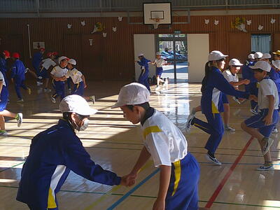 子供たちの運動することの効果は多数あります。今日も冷たい風に向かって走っています。体育科でも精一杯体を動かしています。