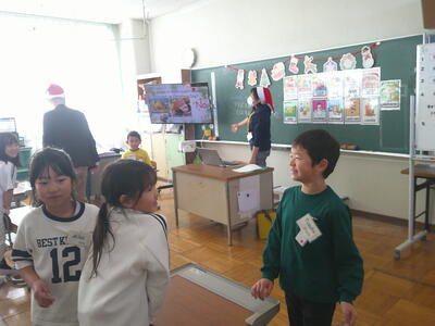 今日の子供たちはいつも以上に笑顔いっぱいです。朝から「サンタがきたんだよ。」「朝、プレゼントが置いてあったんだよ。」と会話もはずんでいます。今日は、クリスマスで、嬉しいプレゼントが届いたし、明日から冬休みがはじまるからでしょうか。