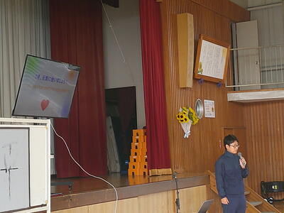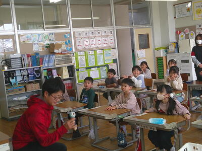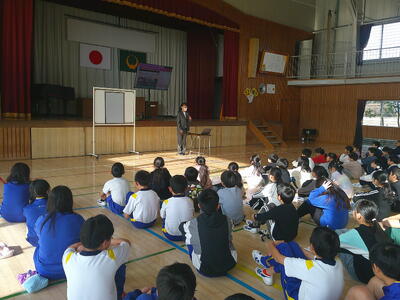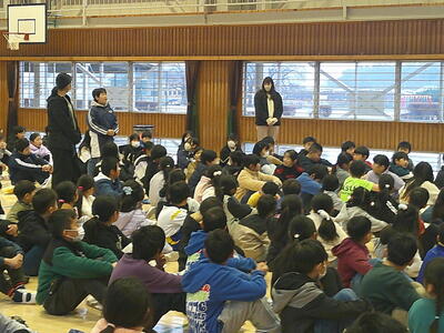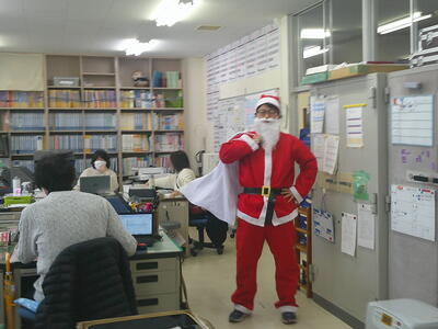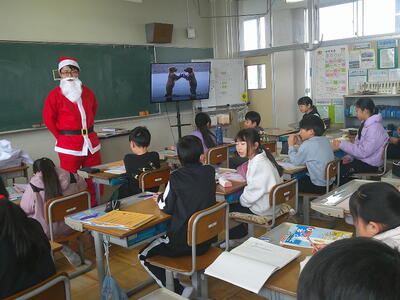 冬休みの安全な生活については、朝から学校に登場していたサンタクロースにそっくりな先生が伝えました。