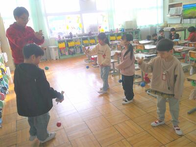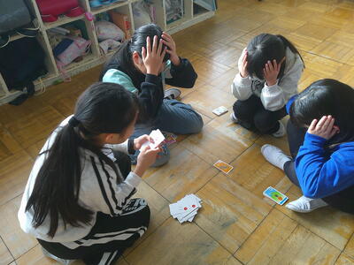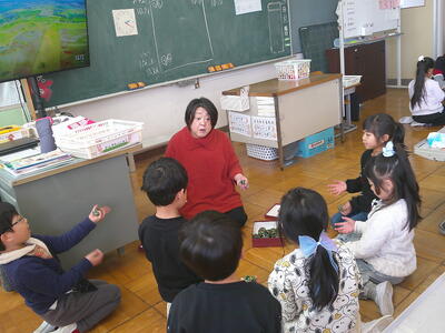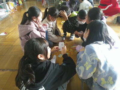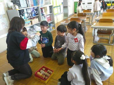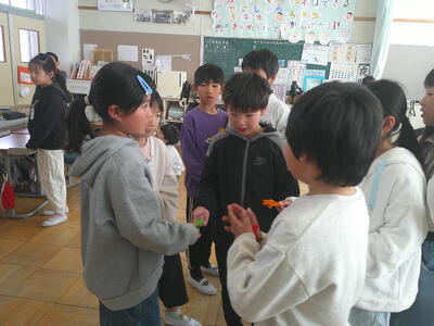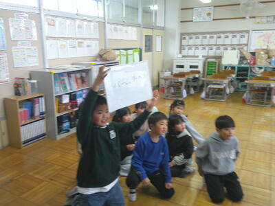 1年生は、昔の遊びをみんなで楽しんでいます。