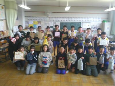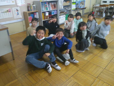 6年生お休み0人です!音楽にのってプレゼント交換も行い、みんなで記念写真撮影です。