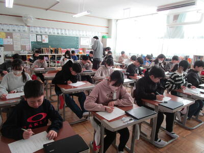 それでも、14日に全校生で実施した学力確認テストに挑む日のお休みは、ほとんどなしであり、みんな元気に参加できました。1時間目から4時間目まで(国語、算数、理科、社会)4教科に対して、ずっとテストに挑んだ6年生は、お休み0人でした。みんなそろってテストに挑むことができた・・・そのことだけで💯💯👋👏です。