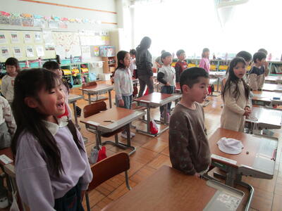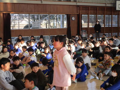 「振り付けがあって楽しく歌えました。」という1年生の声や「一体感を感じてよい想い出になりました。来年もやってほしいです。」といった6年生の感想が伝えられました。