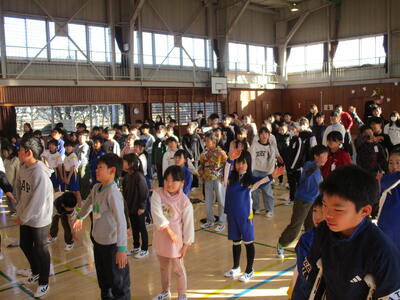 今日の音楽集会は、6年生が中心となって歌いながら振りを付け「ビリーブ」を歌いました。