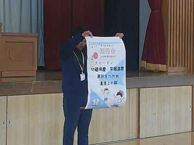 本年度のスローガンは「自分からチャレンジ!みんなでチャレンジ!」です。このスローガンには、昨年度の学校のあゆみから課題であった、「自ら考え学ぶ力:主体性」の育成を目指すことと、主体性は子供だけでは育たないもの、「教職員も保護者の皆さんもそして地域の皆さんも子どもたちとともにチャレンジしましょう」という思いが入っています。