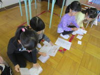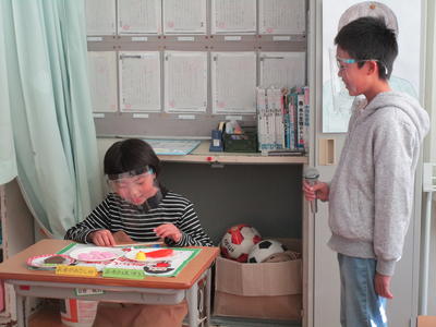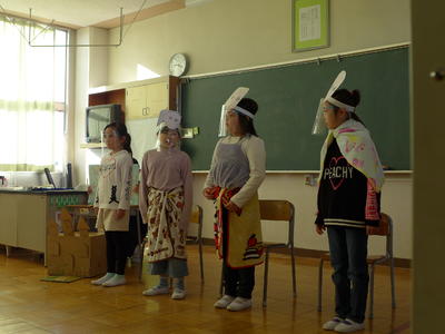 学習発表会の練習中、2年生が招待状を届けに来てくれました。