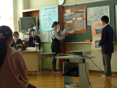 湯津上にゆかりの深い農産物について、「梨」「米・にら」「いちご」の3グループに分かれて発表しました。