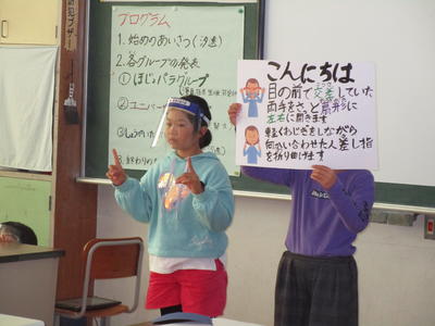 誰もが関わり合えるように調べたことを「ユニバーサルデザイン」「義手・義足、点字など不自由な人たちが使う手段」「介助犬・パラスポーツ」の3グループに分かれて発表しました。
