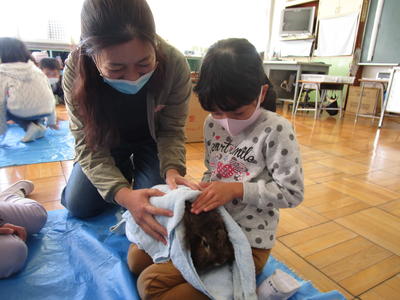 獣医師さんをお呼びして、うさぎとのふれあい授業を実施しました。