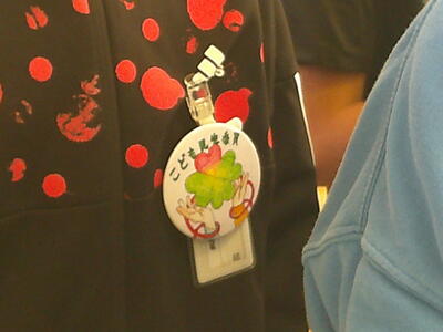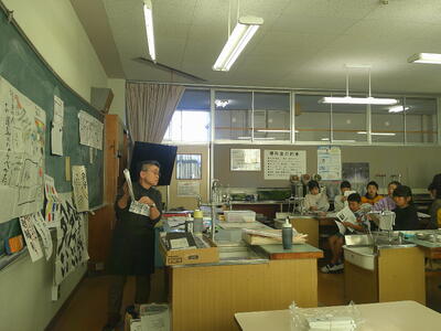 絵手紙教室では、はじめに民生委員の皆さんとともに「こども民生委員」認定の会を行いました。会長よりその会のねらいをお伝えいただくともに湯津上中学校生徒作の「こども民生委員缶バッチ」が贈呈されました。