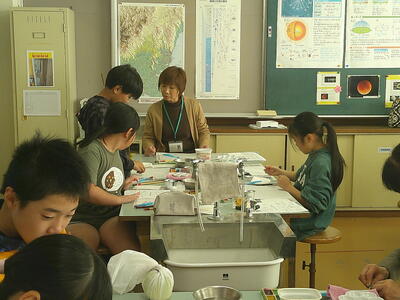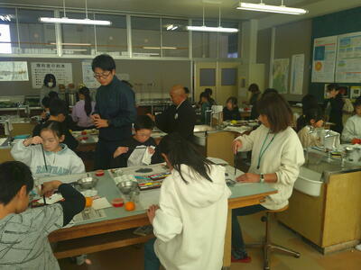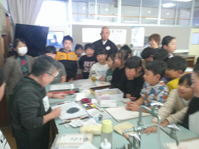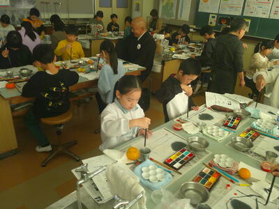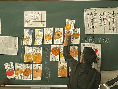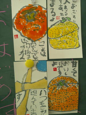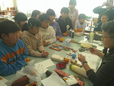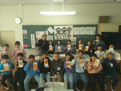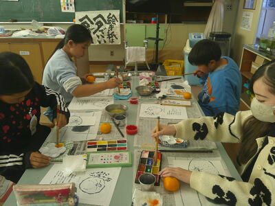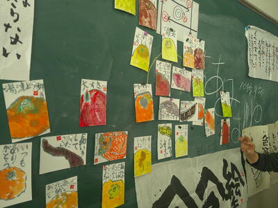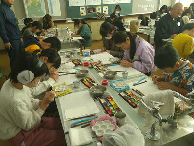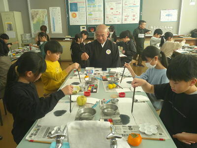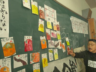 4,5年生は、絵手紙講師 鈴木啓子氏の指導助言のもと、湯津上地区に住む高齢者へ贈る絵手紙を制作しました。