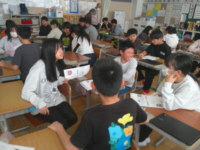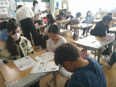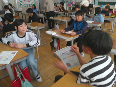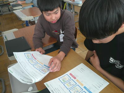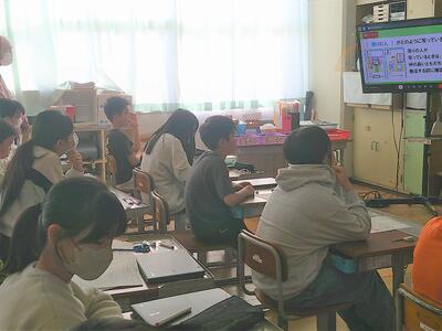 スマホをつかいはじめたときに、どのくらいのリスクがあるのかを考えたり、写真をSNSで発信するとしたら、どのくらいのリスクがあるかを考えたりしました。5,6年生は自分の考えをもち、交流し合っていました。最後に人権擁護員の方のお話を聞き、ちょっとしたわるふざけが、多くの人に迷惑をかけ、損害賠償金を求められ、大切な人生までも台無しになる場合があることも知りました。考えさせらる時間でした。