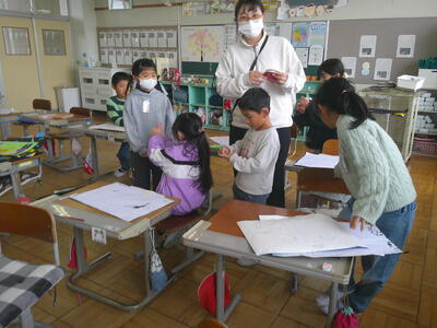 1年生、2年生、3年生も学びに向かっています。1年生は、グループになり、アイディアを広げながら創りたい物をつくっています。
