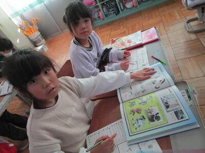 2年生は、国語の学習です。よく読んで、考えて、書いてと集中して学んでいます。