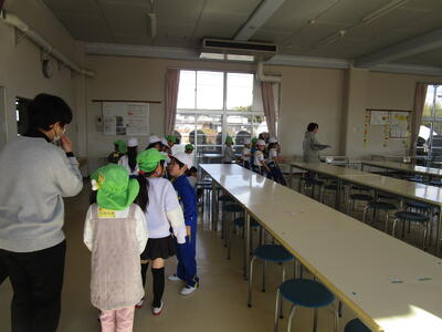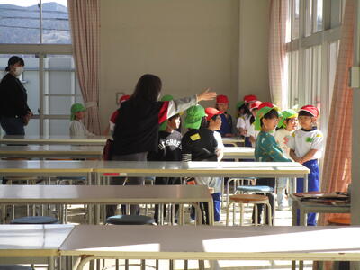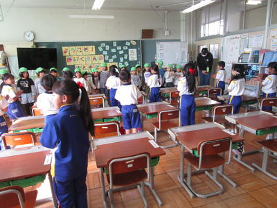 一年前、年長児であった1年生は、すっかりお兄さんお姉さんになり、背筋ピーンとして年長児の皆さんを教室に迎えます。「どきどきして、しんぞうがとびでそう~~」といっている子もいます。