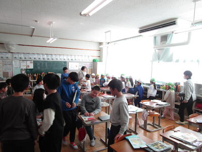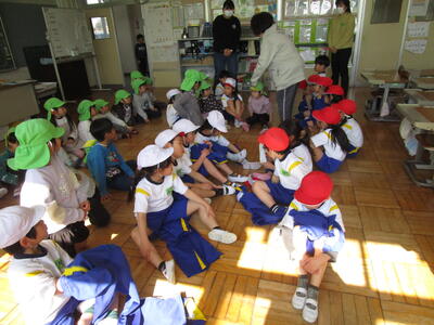 かわいい、かわいい年長児の皆さんを迎え、本校のこどもたちは大騒ぎです。