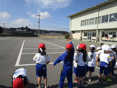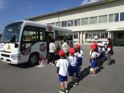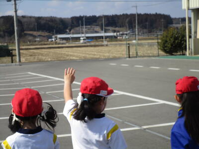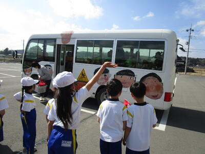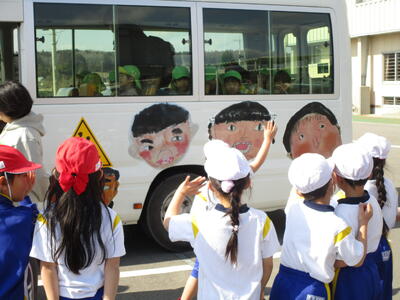 あっという間にお別れの時間。バスで帰る年長児さんをいつまでもいつまでも手を振って送る1年生でした。