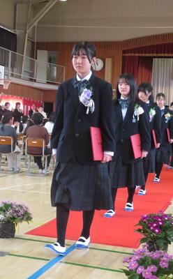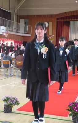 在校生は、花道をつくり卒業生を見送りました。