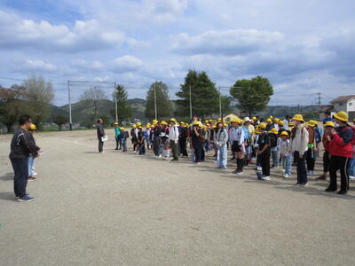 まずは、今日の通学路点検の目的を通学班ごとに並んで聞きました。